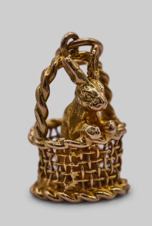 The Curious Golden Bunny in a Basket Charm (9ct 375 Gold 1958)