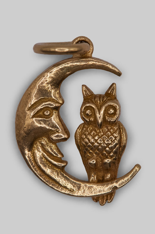 9ct 375 Gold Owl On The Crescent Moon Charm (1955)