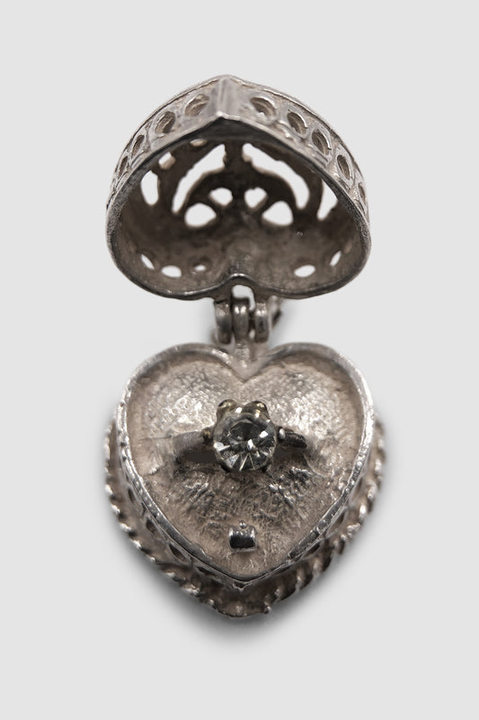 The Opening Engraved Heart Jewellery Box Vintage Charm (925 Sterling Silver)