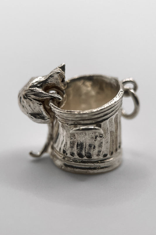 The Hungry Cat in a Trashcan Articulated Vintage Charm (925 Sterling Silver made c 1950s - 1970s)