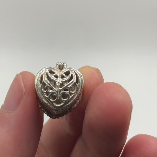 The Opening Engraved Heart Jewellery Box Vintage Charm (925 Sterling Silver)
