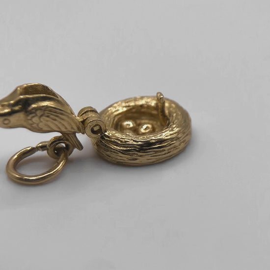 The Opening Adorable Bird in a Nest Vintage Charm (375, 9ct Gold)